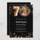 Une invitation photo moderne et design pour une fête de 70e anniversaire. Un arrière - plan noir classique, décoré d'étoiles dorées roses. Personnalisez et ajoutez les détails de votre fête.