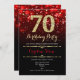 Invitation du 70e anniversaire. Elégant design rouge noir blanc avec parties scintillant d'or. Anniversaire adulte. Comprend des diamants et des caractères de script. Invitation anniversaire homme ou femme. Parfait pour une fête d'anniversaire élégante. Message-moi si vous avez besoin d'une personnalisation plus poussée.