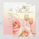 Elégant Peach Roses et Coupes de Champagne design personnalisé 70e anniversaire Fête Cartes d'Invitation Plat. Customisez le nom, la date et tous les détails de vos invitations. Cartes et cadeaux correspondants disponibles dans la catégorie Anniversaire de notre Boutique.