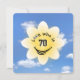 Graphique de fleurs blanches avec soleil brillant, sourire, et globes oculaires sur un arrière - plan bleu ciel d'été pour une fête de 70ème anniversaire. Tout le texte peut être modifié.