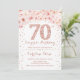 Invitation à la fête du 70e anniversaire. Design élégant en faux rose parties scintillant or et blanc. Doté de roses, confettis et diamants roses roses de couleur pastel. Parfait pour une célébration de glamour.