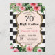 Invitation pour le 70e café pour dames. Invitation pour une fête d'anniversaire noir et or. Paillettes dorées. Fleur florale aquarelle rose. Rayures noir et blanc. Numérique imprimable. Pour une personnalisation plus poussée, veuillez cliquer sur le bouton "Personnaliser" et utiliser notre outil de conception pour modifier ce modèle.