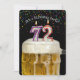 Numéro 72 bougies en tasse de bière avec confetti coloré sur noir pour invitation de fête de 72e anniversaire.