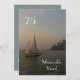 Cette belle vue nocturne sur un voilier sur l'eau, avec la ligne d'horizon de la ville de New York dans le arrière - plan, est une belle toile de fond pour cette invitation du 75e anniversaire de la fête pour le monsieur âgé de votre vie. Le dos de l'invitation est prêt à être customisé.