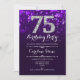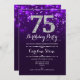 Invitation du 75e anniversaire. Elégant design blanc violet avec fausse parties scintillant argent. Anniversaire adulte. Dispose de diamants et de caractères de script. hommes ou femmes anniversaire invitation. Parfait pour une fête d'anniversaire élégante. Message-moi si vous avez besoin d'une personnalisation plus poussée.