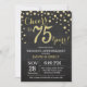 Invitation 75e anniversaire de mariage tableau noir et or. Soixante-quinzième anniversaire de mariage. Fond de diamant à paillettes noires et or. Confettis dorés. Anniversaire adulte. Fête d'anniversaire pour homme ou femme. Pour une personnalisation supplémentaire, veuillez cliquer sur le bouton "Personnaliser" et utiliser notre outil de conception pour modifier ce modèle.
