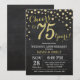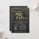 Invitation pour le 75e anniversaire de mariage tableau noir et or. Soixante-quinze ans d'anniversaire de mariage. Fond de diamant à paillettes noires et or. Confettis dorés. Anniversaire adulte. Fête d'anniversaire pour homme ou femme. Pour une personnalisation plus poussée, veuillez cliquer sur le bouton "Personnaliser" et utiliser notre outil de conception pour modifier ce modèle.