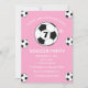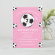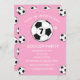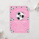 fête du 7e anniversaire pour une fan de football, sports, enfants, filles, pour elle. Rose et blanc, moderne, élégante invitation à la fête d'anniversaire. Veuillez le personnaliser avec vos détails.