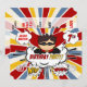 Rouge et bleu avec jaune et blanc lancent une invitation à la fête d'anniversaire sur le thème des super héros pour le garçon aimant la bande dessinée qui a sept ans.