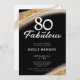 Invite guests to celebrate 80 fabulous years with confidence and elegance. This personalized 80th birthday invitation features a striking black and gold design. Perfect for milestone celebrations that deserve a sophisticated presentation. Customize with name, date, time, and location to create a stylish invitation your guests will love.