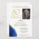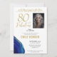 80 et Fabulous Gold Ornament 80th Birthday Photo Invitation. 80 et texte fabuleux en script doré tendance avec photo et nom. L'invitation a un ornement doré et un beau marbre bleu. Personnalisez-le avec votre photo et vos détails, et faites une élégante invitation de fête d'anniversaire surprise pour la fête d'anniversaire de femme.