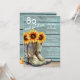 80 Et Fabulous Rustic Country Western Sunflower Invitations présente un design rustique de bottes de cowgirl remplies de tournesols aquarelle. Personnalisé en éditant le texte dans les zones de texte pour vos 80 et fabuleuses invitations de fête de 80e anniversaire. Créé par Evco Studio www.zazzle.com/store/evcostudio