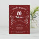 80 et Fabulous Foliage Red 80th Birthday Invitation. 80 et texte fabuleux en écriture blanche tendance avec un nom et feuillage blanc sur un arrière - plan rouge foncé.