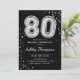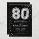 80e anniversaire invitation de fête. Design élégant en faux parties scintillant argent et noir. La carte Invitation comporte le numéro d'argent 80 ballons et la police de script. Parfait pour une célébration anniversaire élégante. Message-moi si vous avez besoin d'âge personnalisé.