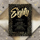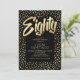 Commencez la fête sur le papier avec ce design audacieux et drôle d'invitation adulte de 80e anniversaire. La typographie audacieuse et humoristique et les confettis festifs en or sur le noir donnent à cette invitation une ambiance classe mais humoristique. Parfait pour l'homme ou la femme qui aime être le centre de la fête. Commandez vos invitations imprimées ou téléchargez vos invitations numériques dès maintenant pour une journée qu'ils n'oublieront jamais !