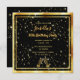 Une carte d'invitation à la fête du 80e anniversaire moderne et tendance pour une femme. Un arrière - plan noir classique, avec cadre et flûtes en faux or, verre et bulles, lettres dorées. Modèles pour vos informations de fête. Retour : noir et bulles