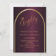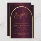 Une élégante invitation au 80e anniversaire. Un arrière - plan bordeaux avec une arche dorée à l'avant.