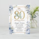 Invitation 80e anniversaire fête Elégante Dusty Blue Floral