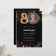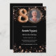 Une invitation photo moderne et design pour une fête du 80e anniversaire. Un arrière - plan noir classique, décoré d'étoiles dorées roses. Personnalisez et ajoutez les détails de votre fête.