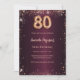 Pour un 80ème anniversaire élégant. Une couleur arrière - plan dégradé bordeaux. Décoré de faux éclats d'or rose. Personnalisez et ajoutez un nom et des détails du parti. Le nom est écrit avec un script de style manuscrit