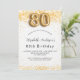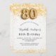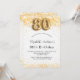Pour une élégante fête du 80e anniversaire. Un arrière - plan blanc chic. Décoré de parties scintillant en faux or, brille. Personnalisez et ajoutez un nom, un âge et des détails de la fête. Le nom est écrit avec un script de style écrit à la main. Numéro 80 avec police de style ballon.