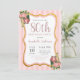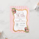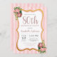 Invitation de fête d'anniversaire 80 ans vintage shabby chic rose pâle rayure paillettes dorées florale