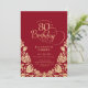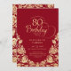 Elégante invitation à la fête du 80ème anniversaire en or rouge. Design classique avec rose, faux feuille d'or et police de script de typographie. Carte invitation tendance parfaite pour une célébration anniversaire élégante. Personnalisez avec vos propres détails. Peut être customisé à n'importe quel âge. Invitations Zazzle imprimées ou téléchargement instantané modèle imprimable numérique.