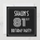 La façade de ce luxueux et des Années folles a inspiré quatre-vingt-et-unième anniversaire de conception de carte d'invitation de fête et de fête comprend un nom personnalisé, un look art déco fantaisie inspiré du numéro "81st", le message "BANTHDAY PARTY!", et une frontière multiligne. L'avant dispose également d'un arrière - plan de couleur noire par défaut, mais il peut être customisé à une couleur différente si désiré. Le verso présente des détails personnalisés sur l'événement, tels que la date, l'heure, le lieu et toute autre information importante. Des invitations élégantes, luxueuses et personnalisées comme celles-ci peuvent être utilisées pour des invités invitations à une fête d’anniversaire organisée pour célébrer le 81e anniversaire de quelqu’un. [~Z0000615]