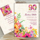 90 ans Fleurs Grand-mère 90e anniversaire Linge Invitation. Célébrez un anniversaire marquant dans le style avec cette vibrante invitation à la fête florale du 90e anniversaire. Doté d'un "90" à motifs floraux audacieux en haut et d'un jardin luxuriant aux fleurs colorées en bas, ce design dégage charme et élégance. Avec un texte personnalisable pour le nom, la date, l’heure et le lieu de la grand-mère, il est parfait pour les fêtes d’anniversaire du printemps ou de l’été. Un accent papillon apporte une touche de fantaisie, ce qui en fait un choix idéal pour des soirées d'inspiration nature ou jardin. Bon appétit !