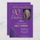 90 et Fabulous Gold Ornament 90th Birthday Photo Invitation. 90 et texte fabuleux en écriture dorée tendance avec photo et nom. L'invitation a un ornement d'or. Personnalisez-le avec votre photo et vos détails, et faites une élégante invitation de fête d'anniversaire surprise pour la fête d'anniversaire de femme.