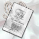 Un 90e anniversaire Elégant Monogramme personnel Invitation anniversaire en noir et blanc. L'âge peut être changé pour n'importe quel âge, pas seulement 90 ans. Une photo est capable d'être sur le devant et l'inverse de l'invitation personnelle. Les informations sont facilement changées en vos propres informations personnalisées avec le mot surprise pouvant être supprimé, l'âge modifié et la date de naissance supprimé si vous le souhaitez. L'inverse a l'arrière - plan photo personnel avec un monogramme personnel en utilisant le même script élégant que l'invitation.