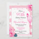 90e anniversaire Flamant rose et fleurs roses design. Florales et rayures roses Un design amusant qui peut être personnalisé facilement à votre information. Au contraire, le design présente les rayures roses et le Flamant rose répété