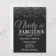 90e invitation anniversaire. Quatre-vingt-dix et fabuleux. Noir et Argent. Paillette argent. Fête d'anniversaire pour adulte. Pour hommes ou femmes. Pour plus de personnalisation, cliquez sur le bouton "Customiser" et utilisez notre outil de conception pour modifier ce modèle.