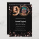 Une invitation photo moderne et design pour une fête du 90e anniversaire. Un arrière - plan noir classique, décoré d'étoiles dorées roses. Personnalisez et ajoutez les détails de votre fête.