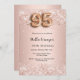 Une invitation moderne, élégante et glamour pour une fête du 95ème anniversaire. Un arrière - plan en or rose avec confetti.Le nom est écrit avec un script de style écrit à la main. Personnalisez et ajoutez les détails de votre fête. Le numéro 95 est écrit avec une police de style ballon, script.