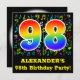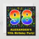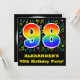 La façade de cette invitation amusante, excitante et vibrante à la fête d'anniversaire comporte un grand nombre de "98" avec un motif inspiré par un gradient de spectre arc-en-ciel, ainsi qu'un nom modifiable et le message "98e anniversaire fête!". Une partie du arrière - plan est dotée d'un motif amusant et coloré de notes de musique et de symboles. Le verso présente des détails/informations personnalisables concernant l'événement auquel les invités potentiels sont invités. Des cartes d’invitation de fête d’anniversaire dynamiques et modifiables comme celle-ci pourraient être envoyées aux invités potentiels d’un rassemblement organisé pour honorer un chanteur, un compositeur de chansons, un musicien ou le quatre-vingt-dix-huitième anniversaire de quelqu’un d’autre. [~Z0000427]