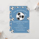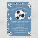 Fête du 9e anniversaire pour un fan de football, des sports, des enfants, des garçons, pour lui. Bleu et blanc, moderne, élégante invitation à la fête d'anniversaire. Veuillez le personnaliser avec vos détails.