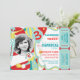 Carte d'anniversaire de thème de carnaval de clowns de cirque avec l'insertion de photo en les bleus, le rouge, le blanc, et le jaune avec des billets de tombola sur le côté. Perforez juste les côtés pour un facile arrachent !