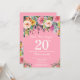 Invitation à l'occasion du 20e anniversaire de la Surprise de fleurs roses pour les femmes. Fleur florale aquarelle. Arrière - plan rose. Rose, Jaune, Orange, Fleur Violette. Anniversaire adulte. 13ème 15ème 16ème 18ème 20ème 21ème 30ème 40ème 50ème 60ème 70ème 80ème 90ème 100ème, tout âge. Pour plus de personnalisation, cliquez sur le bouton "Customiser" et utilisez notre outil de conception pour modifier ce modèle.