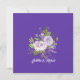Beau étalage fleuri de fleurs roses violettes, rose crémeux et blanc ivoire Beaucoup de feuilles dans différentes couleurs et formes. Cela donne un peu une ambiance boho. Mais les fontes élégantes le gardent sur le côté chic de Boho. Le dos est violet royal profond et a un beau bouquet floral rose violet qui se coordonne parfaitement avec le spray sur le devant. Les noms des jeunes mariés sont ci-dessous en écriture vive blanche. Cela fait partie de ma collection de fleurs d'ivoire pourpre.