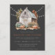 Rustic Mariage de automne Barn String Lights Invitation - Notre invitation rustique comprend une grange pittoresque aquarelle de campagne entourée de citrouilles, feuillage de chute et tournesols sur les portes de la grange. Des lampes à cordes scintillantes sont suspendues au-dessus. L'invitation fait partie d'une collection.