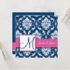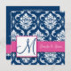 Faire-part de mariage avec le motif de Damas bleu Navy, Monogramme Initial, Noms avec le rose framboise. Un design faire-part de mariage moderne avec des éléments damassés vintages et monogrammés parfaits pour un mariage d'été. Conception de l'invitation par Elke Clarke©. Graphiques sous licence pour utilisation. Customisez avec votre monogramme, vos noms et vos faire-part de mariage. De plus, choisissez parmi une variété de fontes et de beaux papiers pour faire vos invitations de mariage FABULOUS! Contactez-nous pour des modifications de couleurs.