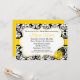 Invitation vos invités à votre baby shower, douche nuptiale, fête d'anniversaire ou tout autre événement d'une manière amusante avec cette invitation damassée noire et jaune.