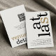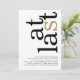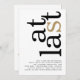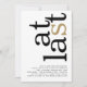 À Dernier QR Code White Black Gold Engagement Party Faire-part et invitation. Un design typographique moderne, avec At Dernier en grande typographie tourné et à droite en haut, en noir avec or pour la lettre "s" sur un arrière - plan blanc. La couleur arrière - plan peut être changée de chaque côté si vous le souhaitez par Personnaliser plus loin. Cette version de l'invitation est avec les parties à l'esprit se déroulant dans un hôtel ou un restaurant (ou tout lieu avec un site Web), remplacer le code QR au dos par un code QR à leur site Web afin de faciliter aux clients de trouver des directions, etc. Vous pouvez créer des codes QR gratuitement en ligne. Recherche "créateur de code QR" et beaucoup d'options viennent à créer gratuitement. Vous pouvez également supprimer le code QR et le texte au verso si cela n'est pas nécessaire via personnaliser plus loin.