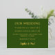 Classic Forest Green Mariage Foil Invitation, facile de personnaliser le devant de l'invitation avec les détails du mariage et le nom du couple se mariant, en utilisant le modèle de personnalisation en ligne avant de commander. L'avant de l'invitation présente un beau texte en feuille métallique sur un bel arrière - plan couleur "vert forêt", tandis que l'arrière de la carte est couleur claire "vert forêt".