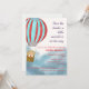 L'invitation à la baby shower présente un ours mignon dans une montgolfière volant au-dessus des nuages décrivant l'arrivée du bébé.