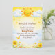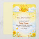 Invitation à la baby shower Hello Little Sunshine lumineuse et joyeuse, conçue avec des tons pastel joyeux, des nuages doux et des accents solaires chauds. L'illustration du soleil et du ciel dans un style aquarelle douce crée une atmosphère heureuse et accueillante pour célébrer l'arrivée d'un petit. Parfait pour les baby showers à thème soleil de printemps ou d'été, avec une ambiance chaleureuse et légère qui complète la décoration de fête inspirée des fleurs et du ciel.