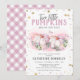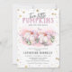 Cartes d'invitation à la baby shower pour filles jumelles avec un fond blanc simple, des citrouilles à l'aquarelle rose, des papillons, des fleurs, de l'eucalyptus, des étoiles dorées et roses, et un modèle moderne de shower pour jumeaux facile à personnaliser.
