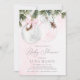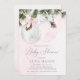 Invitation à la baby shower pour fille de Noël. Conçue avec des ornements de Noël rose tendre aquarelle. Articles assortis dans notre magasin Cava Party Design.