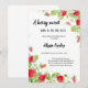 CUTE STRAWBERRY BABYSHOWER INVITATION Carte d'invitation baby shower fille mignonne avec l'aquarelle illustration de fraises. Le texte dit "un bébé doux aux baies est en route."